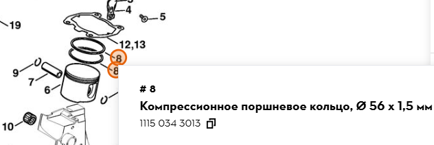 Компрессионное поршневое кольцо, Ø 56 х 1,5 мм HSH7005615 Farmertec для бензореза Stihl TS700 TS800 (артикул STIHL 11150343013)